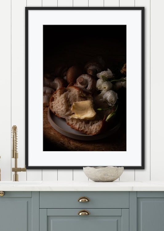 Poster Still Life Bread Butter Flowers 1